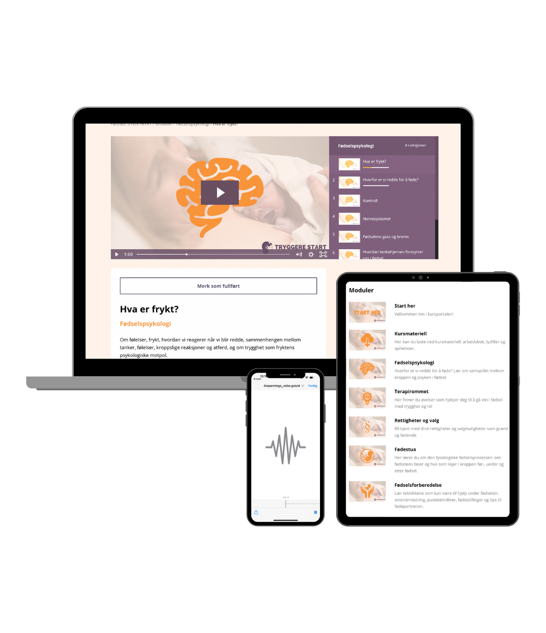 ✅ Hjelp til å jobbe med frykt, uro og bekymring, slik at du kan gå inn i fødselen med trygghet, selvtillit og mestringstro.